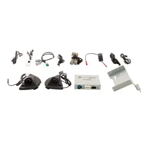 This blind spot monitoring kit is a three-camera system with a graphical user interface (GUI) integrated into the vehicle touch-screen. The system automatically activates cameras based on driving behavior, such as using left and right turn signals. To view the wireless trailer camera, activate the GUI and select wireless trailer camera. The two side-view blind-spot cameras integrate into your vehicles side-view mirrors with side mirror pod camera mounts. An included wireless rear trailer camera mounts on the top rearmost trailer edge for a behind-trailer view when backing up, or on demand anytime. Specifically for vehicles with IOK radios. Expand your field of vision with the Intellihaul 2.0 Trailering Camera System from EchoMaster, engineered to add visibility into blind spots while towing. The two side-view blind-spot cameras integrate into your vehicle's side-view mirrors with side mirror pod camera mounts. This customizable camera system features the ability to add one of two available cameras: an additional Optional Wireless Trailer Camera that can be placed to monitor cargo or livestock inside the trailer, or a Front Camera, designed to mount to the front grille or bumper, can be automatically activated at a low driving speed (.